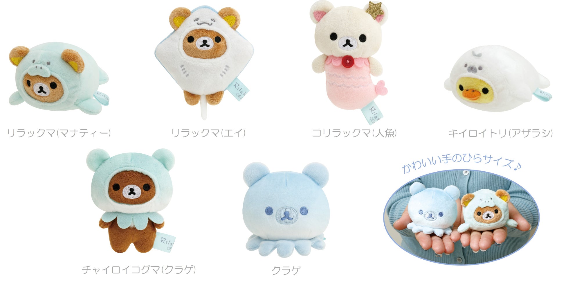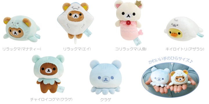 リラックマたちが海で過ごす姿をイメージしたアイテムで、アザラシやマナティーなど海の動物とリラックマが似ているという楽しいテーマです。