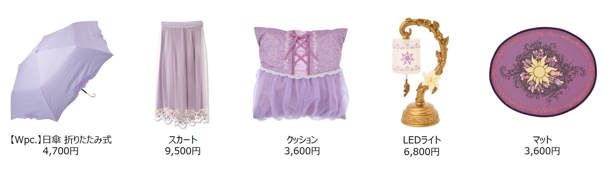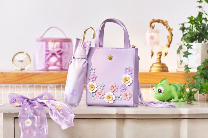 ラインナップには、ラプンツェルをイメージしたバッグやスカート、春にぴったりな日傘などがあります。