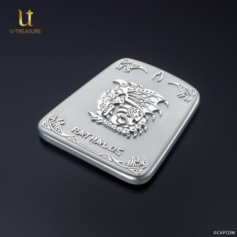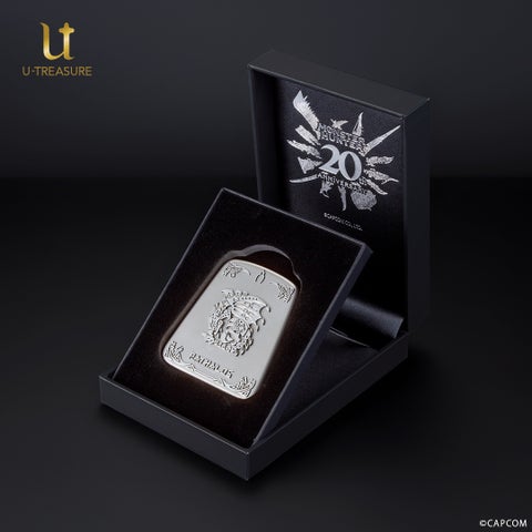 この石板は「モンスターハンター」シリーズとのコラボで、シルバー製でリオレウス希少種とリオレイア希少種のアイコンが表現されており、特製ケースも付属します。