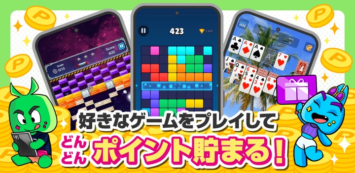 ユーザーはゲームをプレイして「ジェム」を獲得し、電子マネーやギフトカードと交換できます。