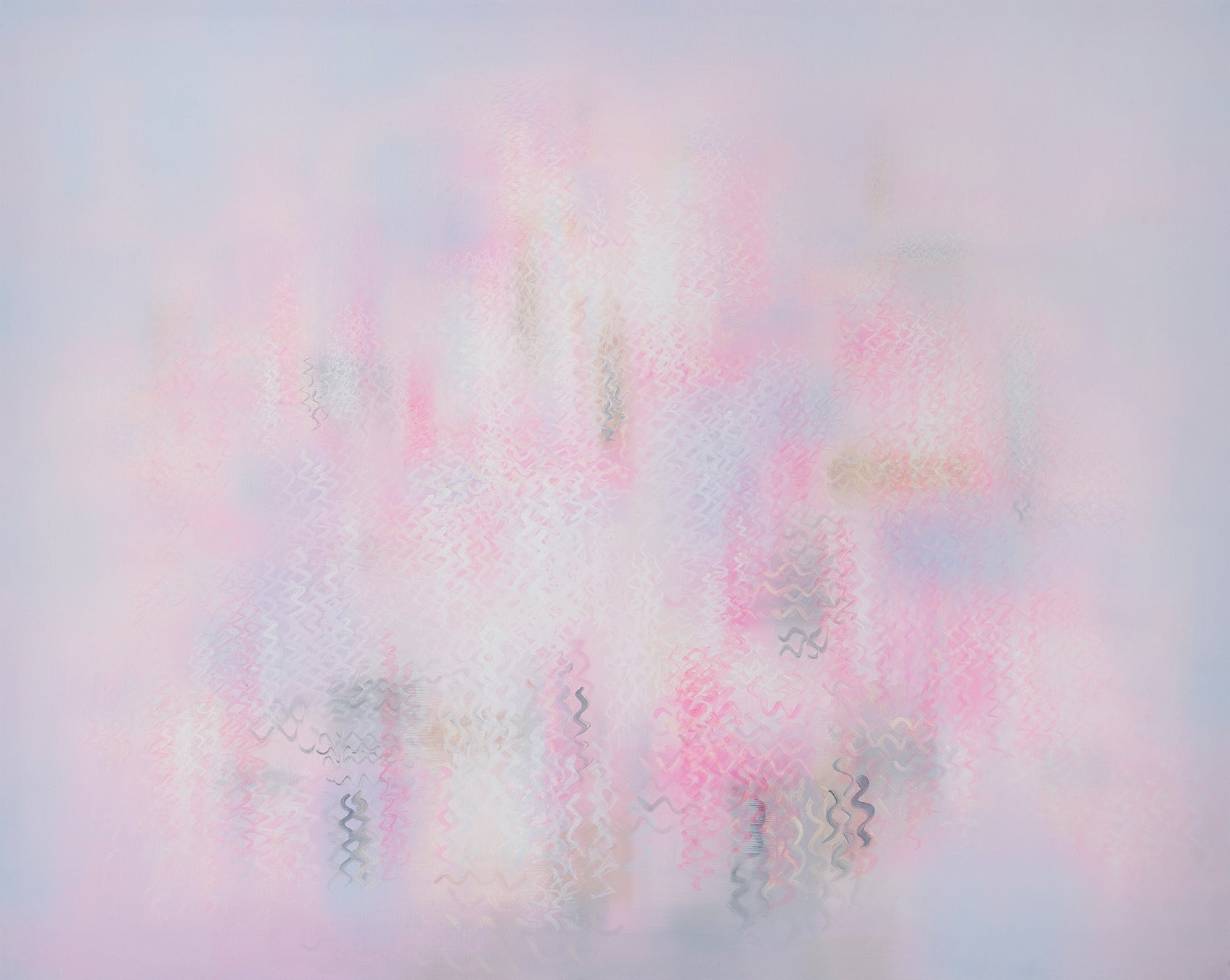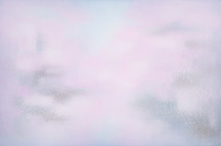 展覧会では桜をモチーフにした作品が展示され、朦朧とした筆致が観賞者の認識を揺さぶります。