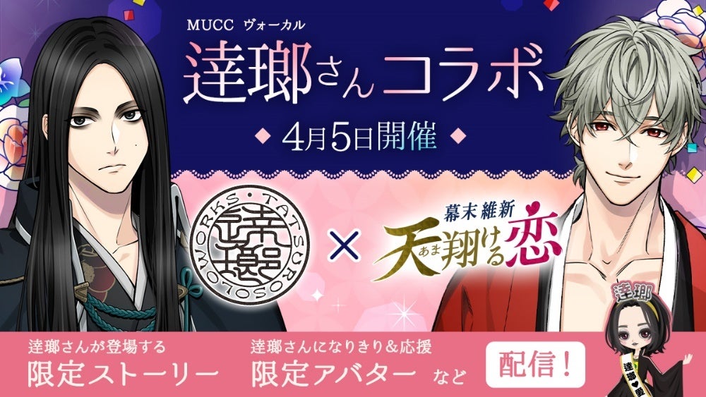 逹瑯は「幕末維新 天翔ける恋」の主題歌「CATHARSIS」を担当し、特別なストーリーやイラストが配信されます。