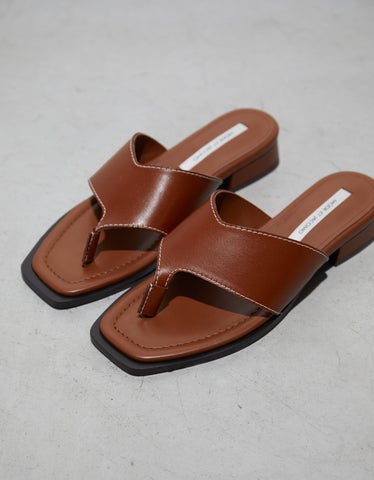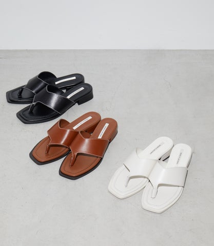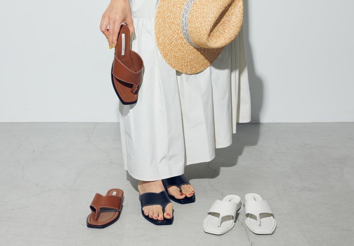 第一弾のカラフルなパンプスに続き、シンプルで大人っぽいレザートングサンダルが特徴です。