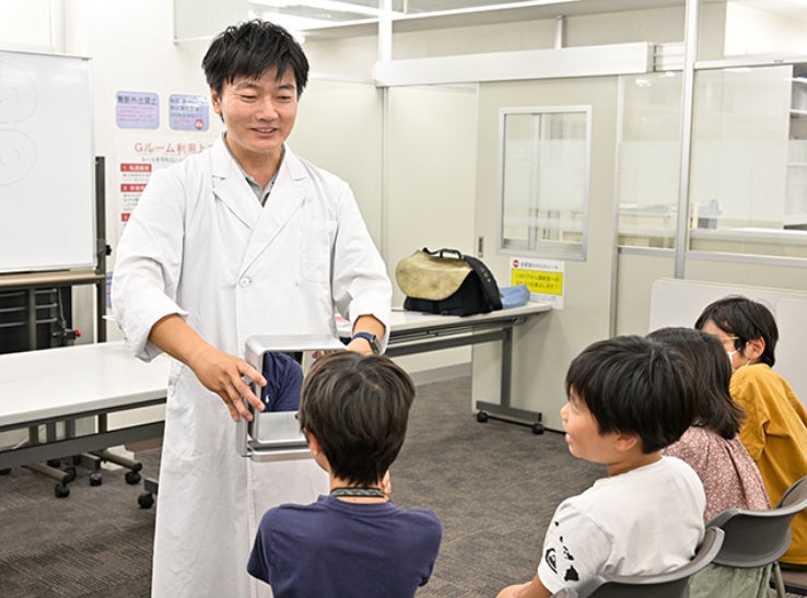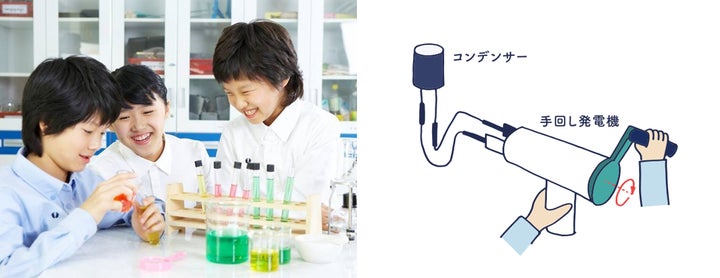 小学生親子向けの実験イベントも開催され、コンデンサーや手回し発電機、タマネギの辛味などを体験して学べます。