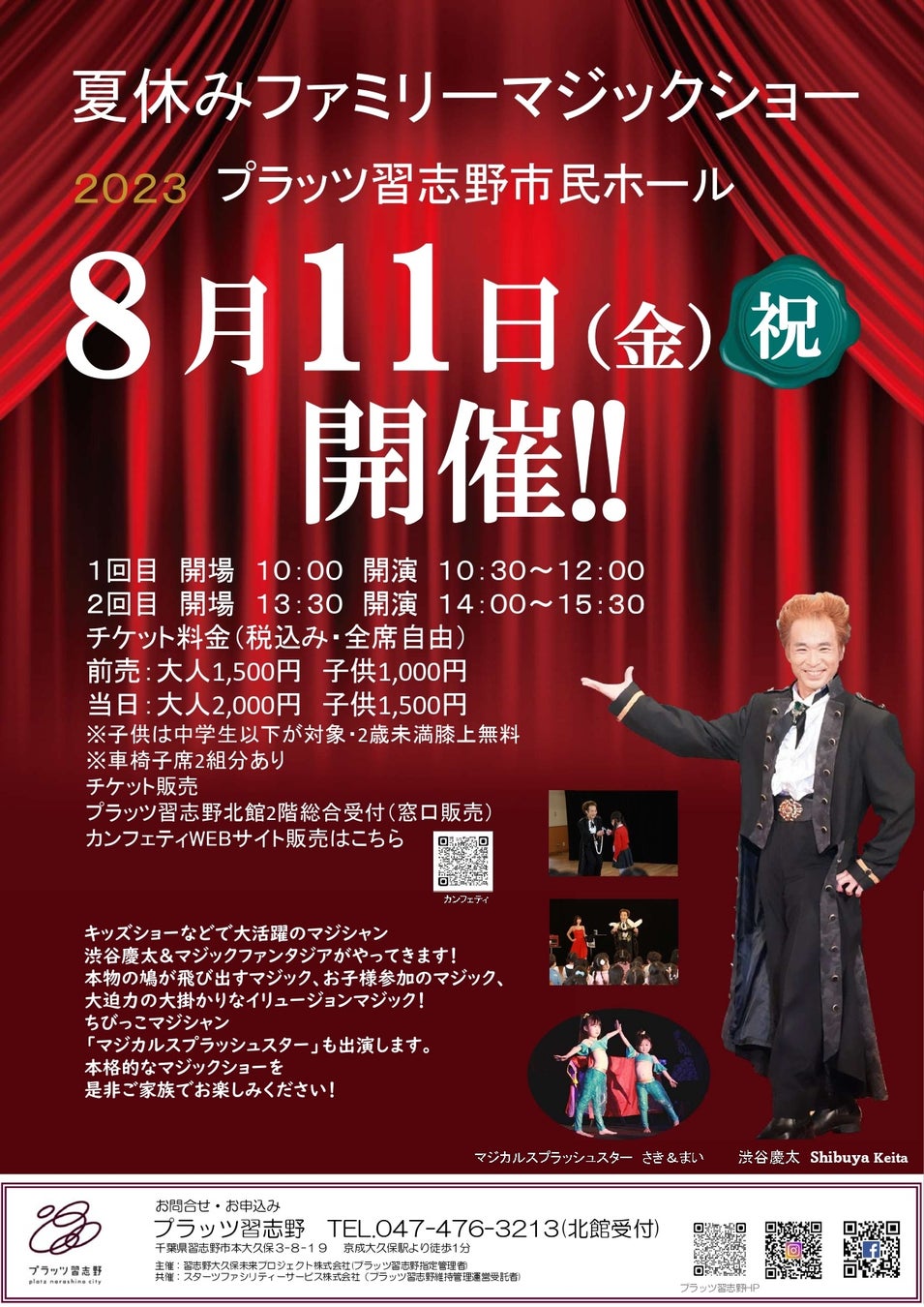- 2023年8月11日に習志野市民ホールで『夏休みファミリーマジックショー』が開催される。