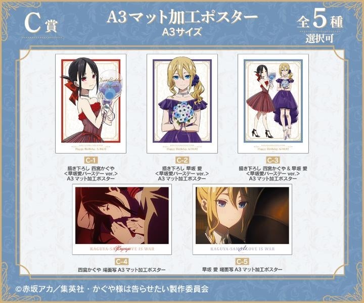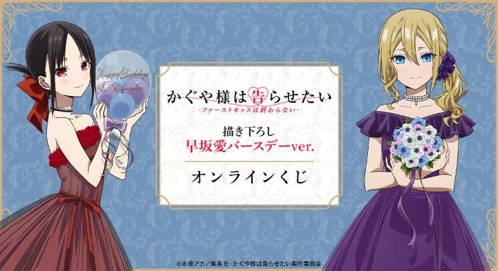 東京都中野区に本社を構える株式会社アルマビアンカは、アニメ「かぐや様は告らせたい-ファーストキスは終わらない-」の描き下ろし早坂愛バースデーver.のオンラインくじを4月2日から販売開始します。