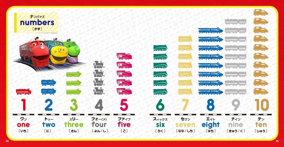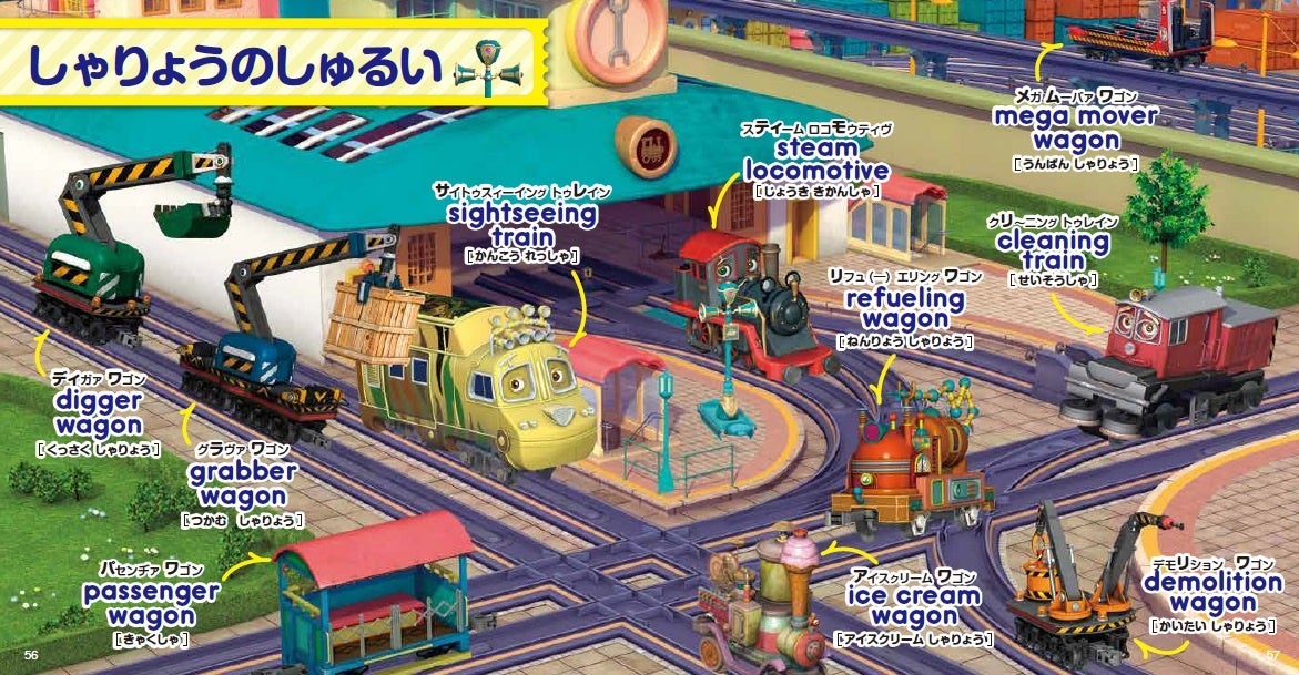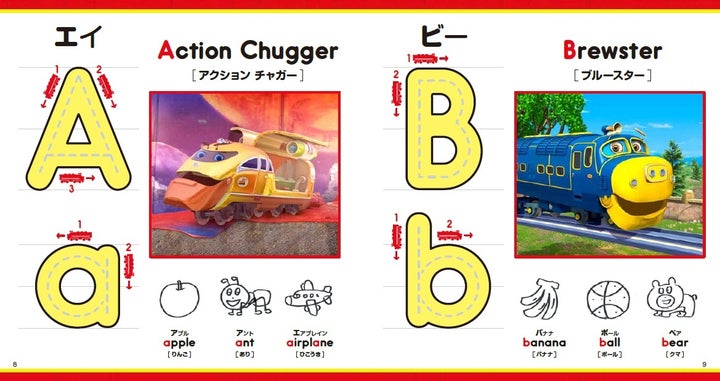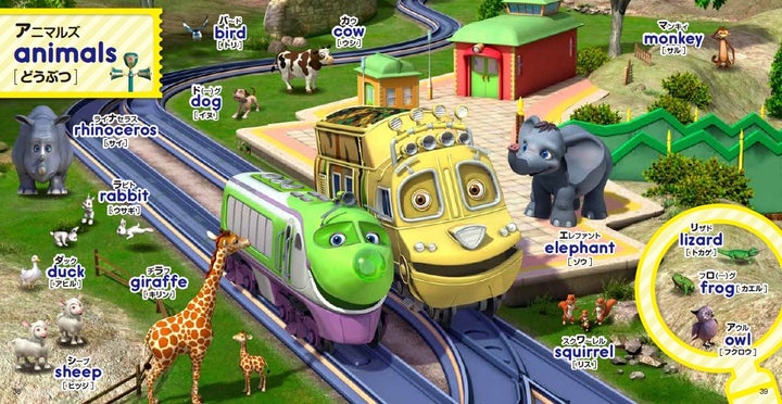 絵本にはチャギントンのキャラクターや英語の基本から身近な単語まで幅広く収録されています。