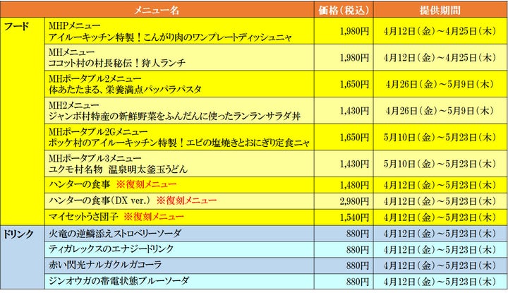 - モンスターハンター20周年コラボメニューが公開