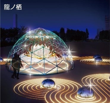 異なる輝きを放つ作品が幻想的な空間を演出し、光の庭園で和式美を体感できます。