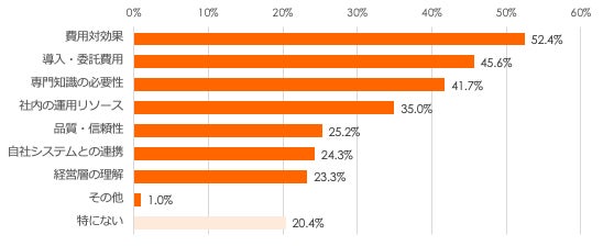 一方、導入・活用に際して課題とされているのは「費用」と「見合う成果」です。