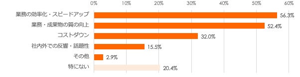 導入・活用に期待する効果としては、「業務の効率化」と「質の向上」が5割以上の回答者によって挙げられました。