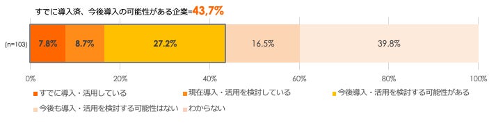 シリコンスタジオが行った調査によると、導入済の企業は7.8%であり、検討中または今後予定の企業は35.9%でした。