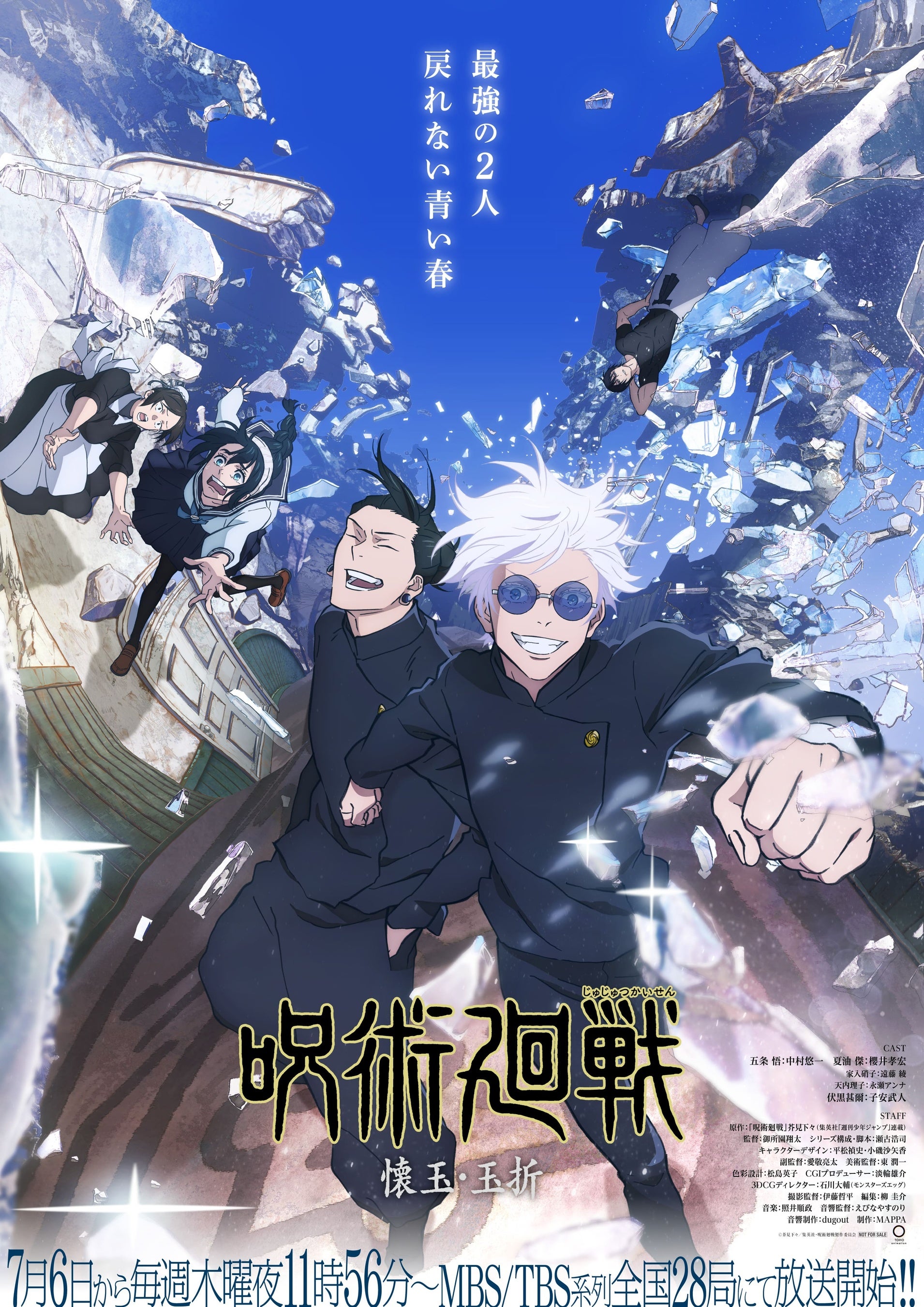 TVアニメ第2期「懐玉・玉折/渋谷事変」が、令和5年7月6日から毎週木曜日夜11時56分~、MBS/TBS系列全国28局にて放送開始。