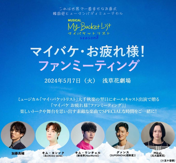 韓国発のヒューマンバディミュージカル『My Bucket List』のファンミーティングが急遽決定!出演者は加藤良輔、キム・ヨンソク、キム・ワンチョル、グァンス、MikaLの5名。