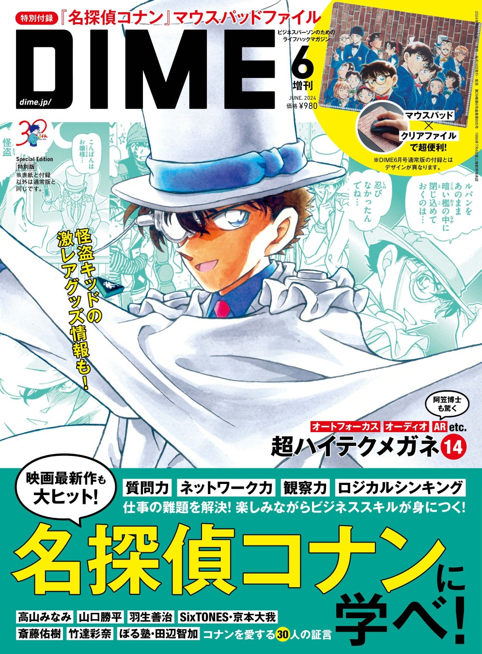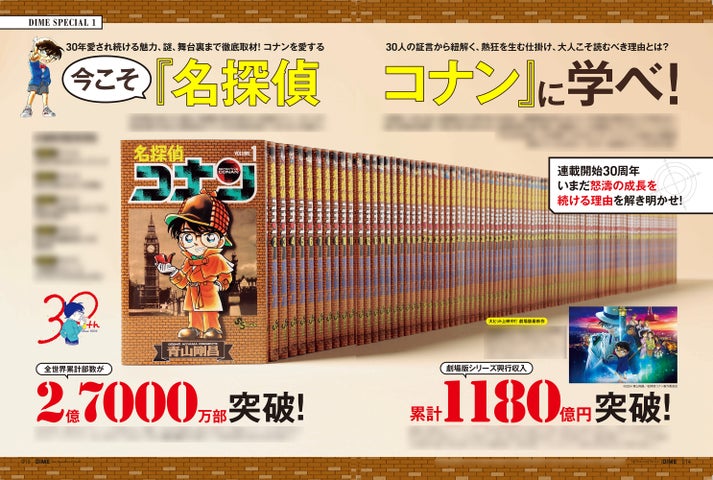 DIME6月号では、30周年を迎えた「名探偵コナン」を50ページにわたり特集しています。
