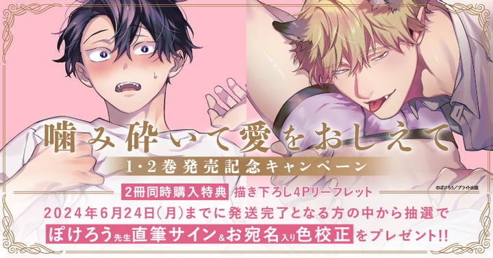 ぽけろう先生最新コミックス『噛み砕いて愛をおしえて』1・2巻発売記念キャンペーン開催中!詳細は公式サイトでチェック!