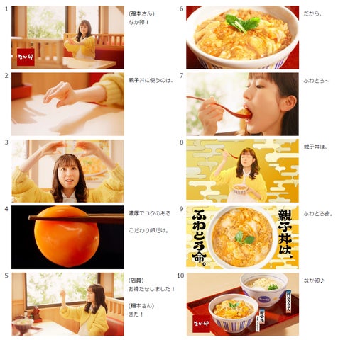 福本さんがこだわりの卵を使用したふわとろ食感の親子丼を堪能するストーリーが描かれており、商品到着を待ちながら楽しみにする様子や、口あたりと舌触りを楽しむシーンが印象的です。