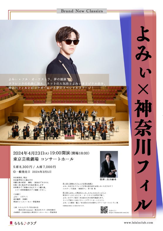 2024年4月23日に東京芸術劇場で開催される「Brand-New-Classics よみぃ×神奈川フィル」公演は、YouTubeで人気のピアニストよみぃと神奈川フィルハーモニー管弦楽団がコラボレーションします。