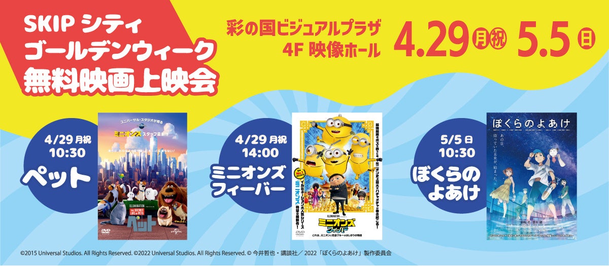 SKIPシティゴールデンウィーク無料上映会は2024年4月29日と5月5日に開催されます。