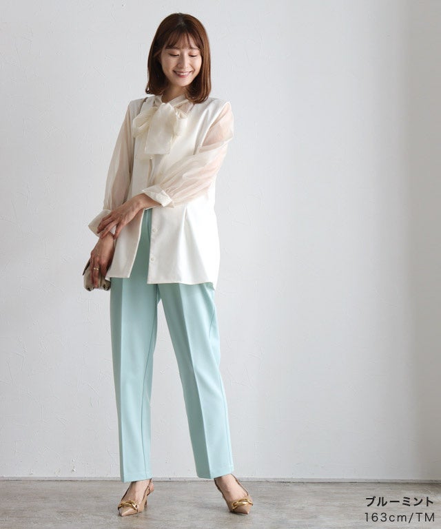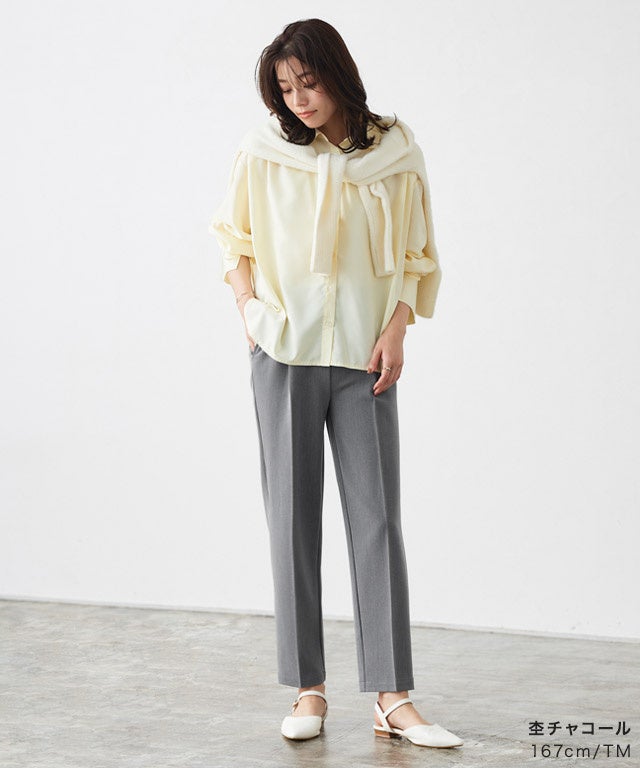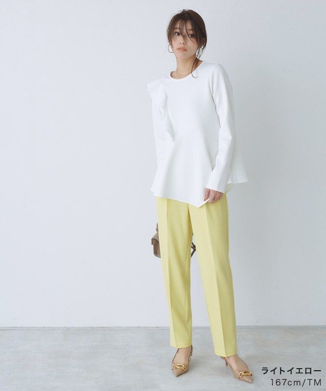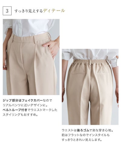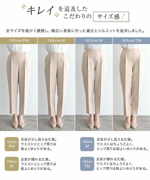 Pierrot Shopの新作テーパードパンツは、幅広いサイズ展開で、PサイズとTサイズも揃っています。