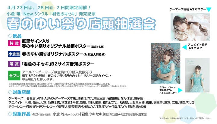 さらに、4月27日と28日には「君色のキセキ」発売記念の店頭抽選会が開催されます。