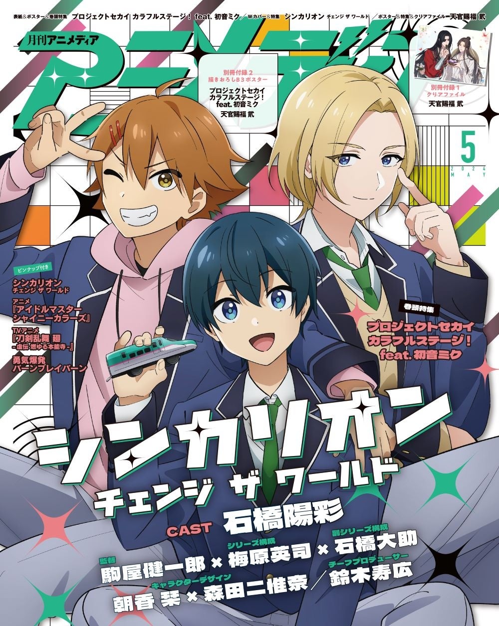 『プロジェクトセカイ カラフルステージ! feat. 初音ミク』がアニメディア5月号の表紙を飾り、裏表紙には『シンカリオン チェンジ ザ ワールド』から3名が登場。