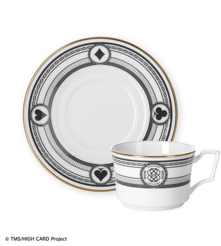 ノリタケとのコラボでは、エクスプレイングカードをモチーフにしたカップ&ソーサーが登場。