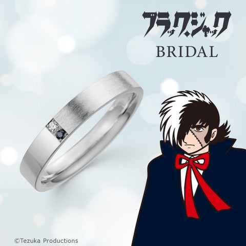 手塚治虫『ブラック・ジャック』ブライダルリング – ダイヤモンドとブラックダイヤモンドが輝くデザイン