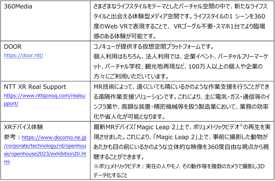 XRデバイス体験参考 https://www.docomo.ne.jp/corporate/technology/rd/openhouse/openhouse2023/exhibition20.html