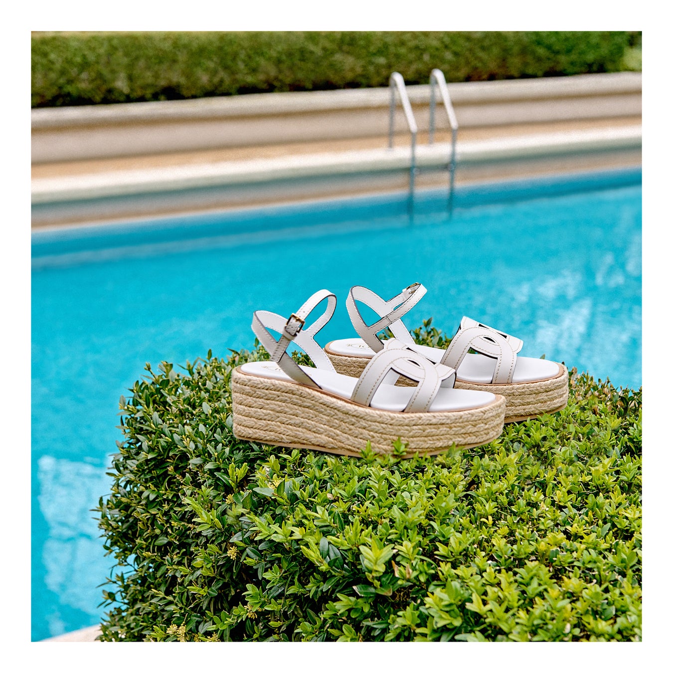 グリーンが豊かな空間には、エレガントなサマーアイテムが並び、ポップアップ限定や先行販売のシューズやバッグ、ウェアが揃います。