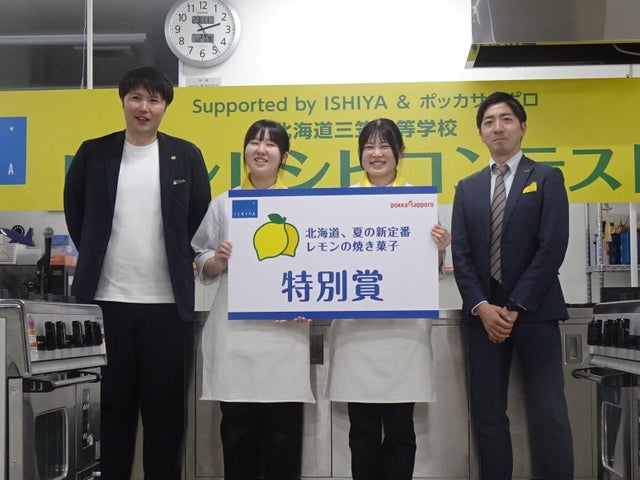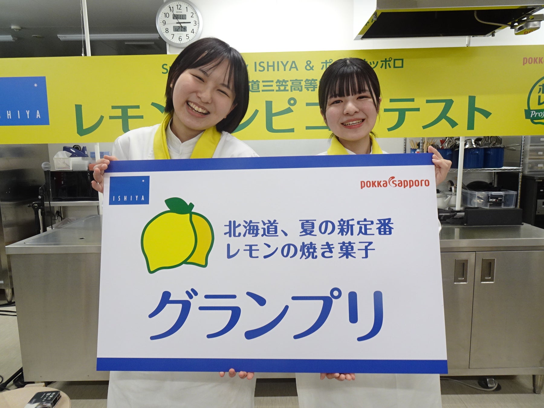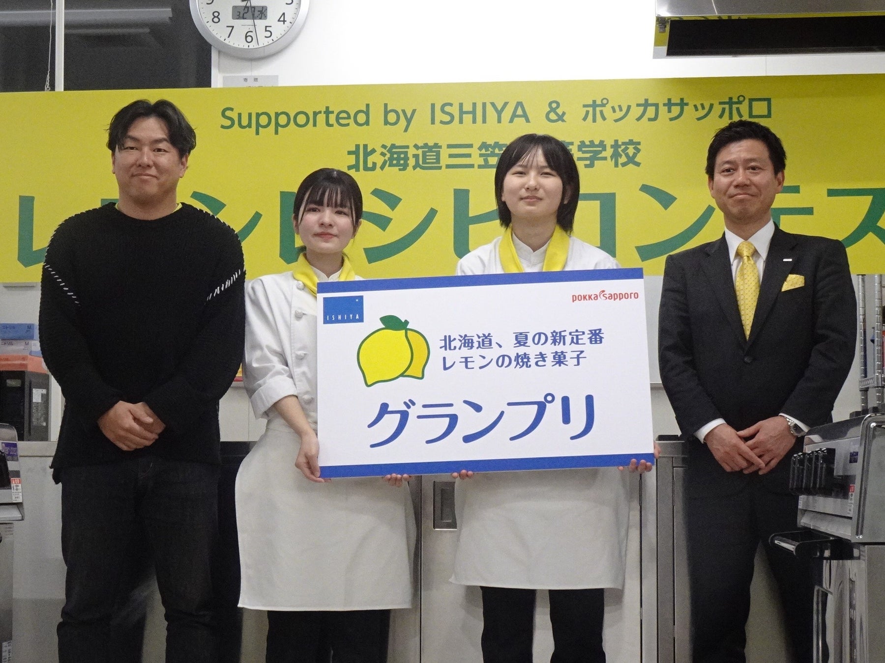 北海道三笠高校とのコラボで開催されたレモンレシピコンテストの最終審査会が行われ、石屋製菓とポッカサッポロ北海道の審査員が選んだグランプリ作品は「ココなつれもんケーキ」でした。