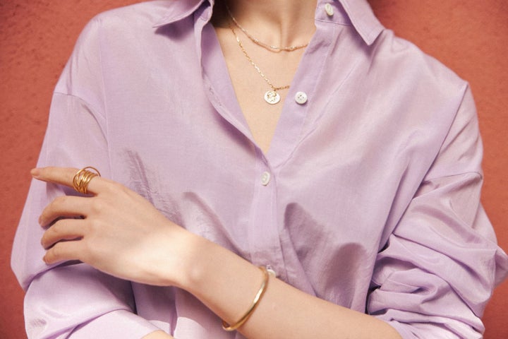 • 春の装いや美しさについて語られ、サテンセットアップやシャツ+デニムのスタイリング紹介