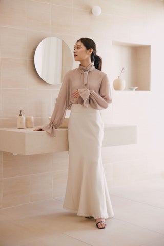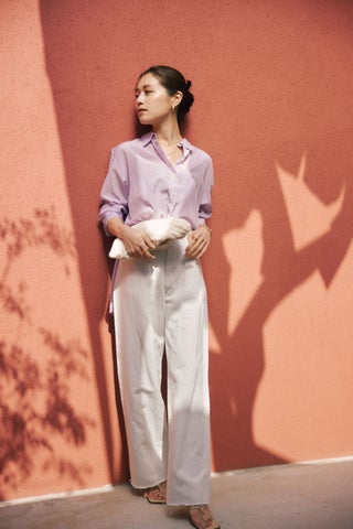 春の装いや美しさに焦点を当て、サテンセットアップやシャツ+デニムなどのスタイリングが紹介されました。