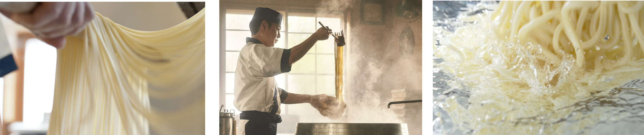 100%国産の小麦粉を毎日打ち、その場で麺を切って、茹でて、つくりたてをお客さまに提供しているからこそ、もちもちでおいしい独自の“丸亀食感”を守り続けることができているのです。