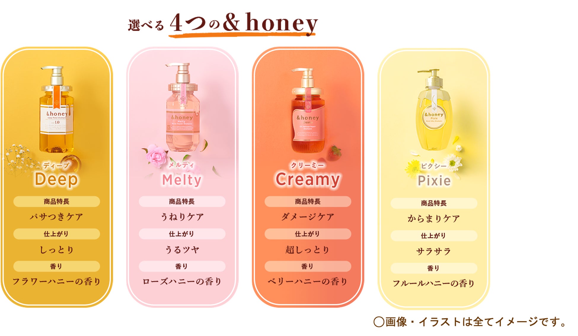 &honeyには4つのシリーズがあり、それぞれ特化したケアを提供。