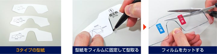 3種類の型紙が付属し、レンズ形状に合わせてカット可能です。
