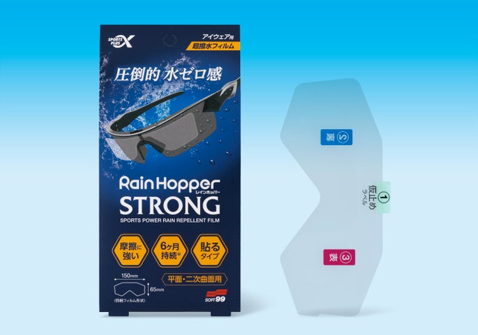 新製品「スポルファ レインホッパー ストロング」は、スポーツ中の視界を確保するための超撥水効果を備えています。