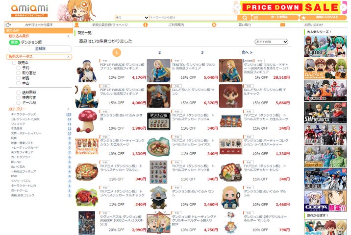 他にも『ダンジョン飯』関連製品もチェックできます。