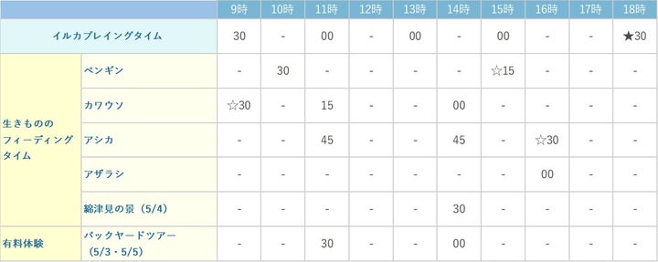 GW期間中は18時以降に特別な照明演出も行われ、イルカサンセットプログラムや給餌イベントも開催されます。