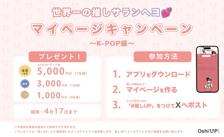 - 「Oshi UP!(推しアップ)」アプリのβ版リリース記念キャンペーン第3弾開催中