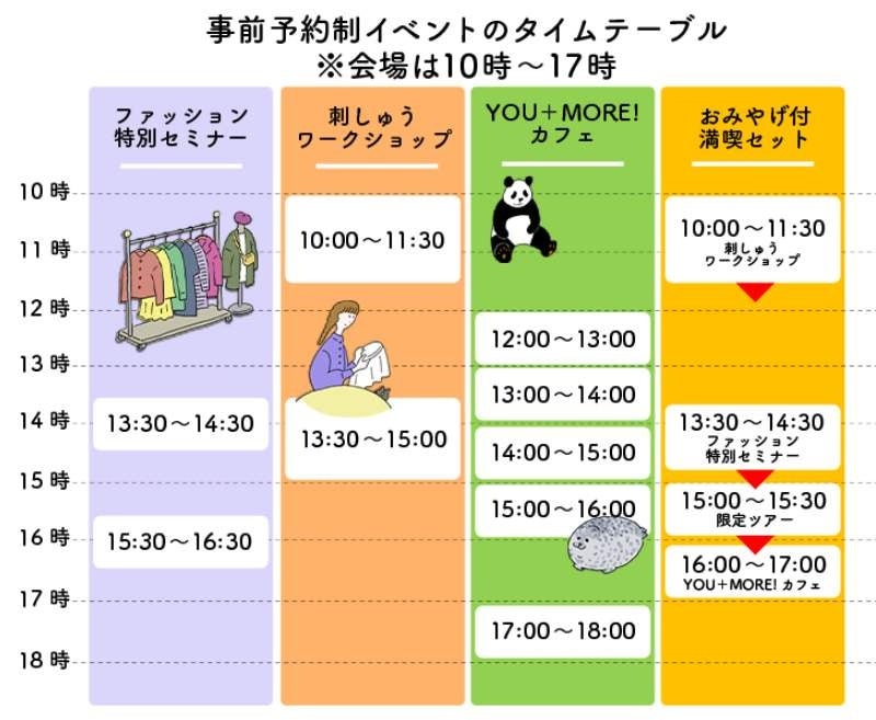 - クチュリエの刺しゅうワークショップや久野梨沙さんのファッション特別セミナーなど