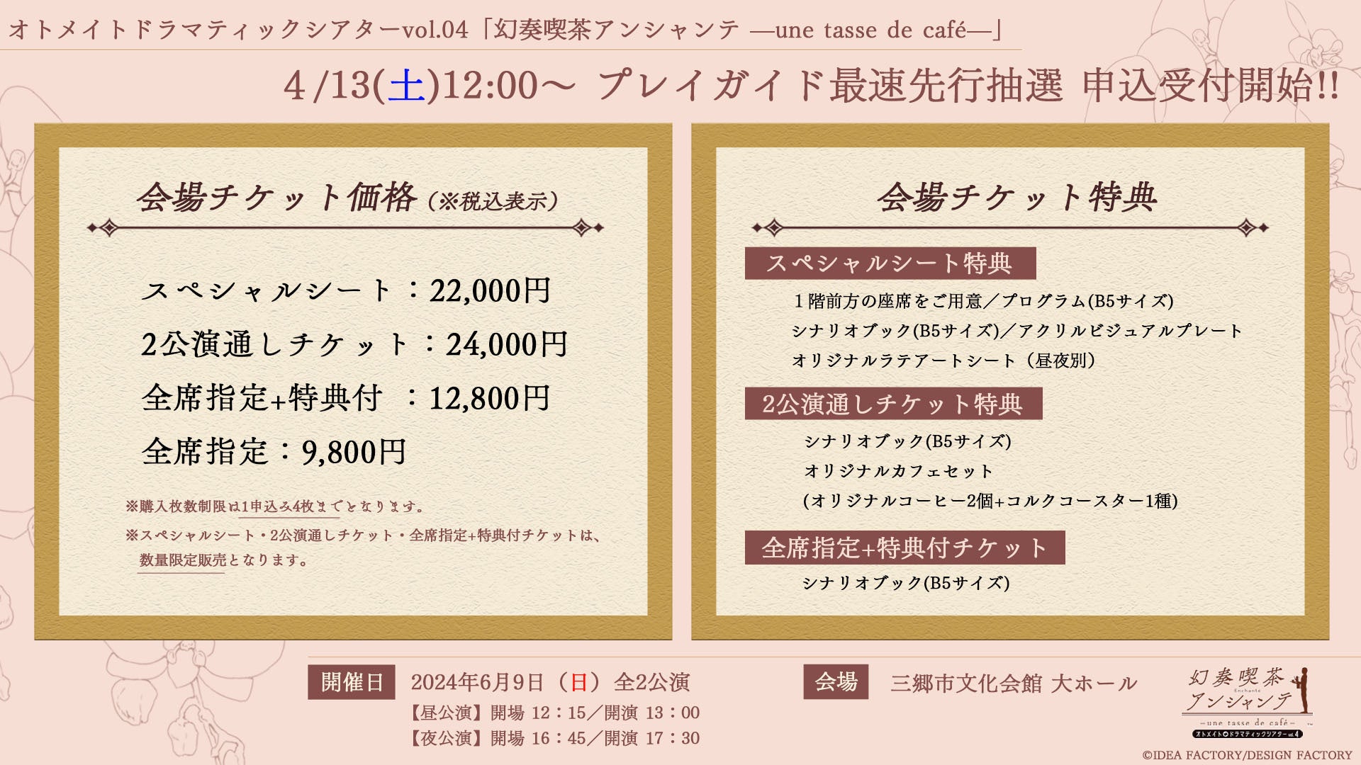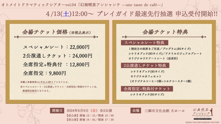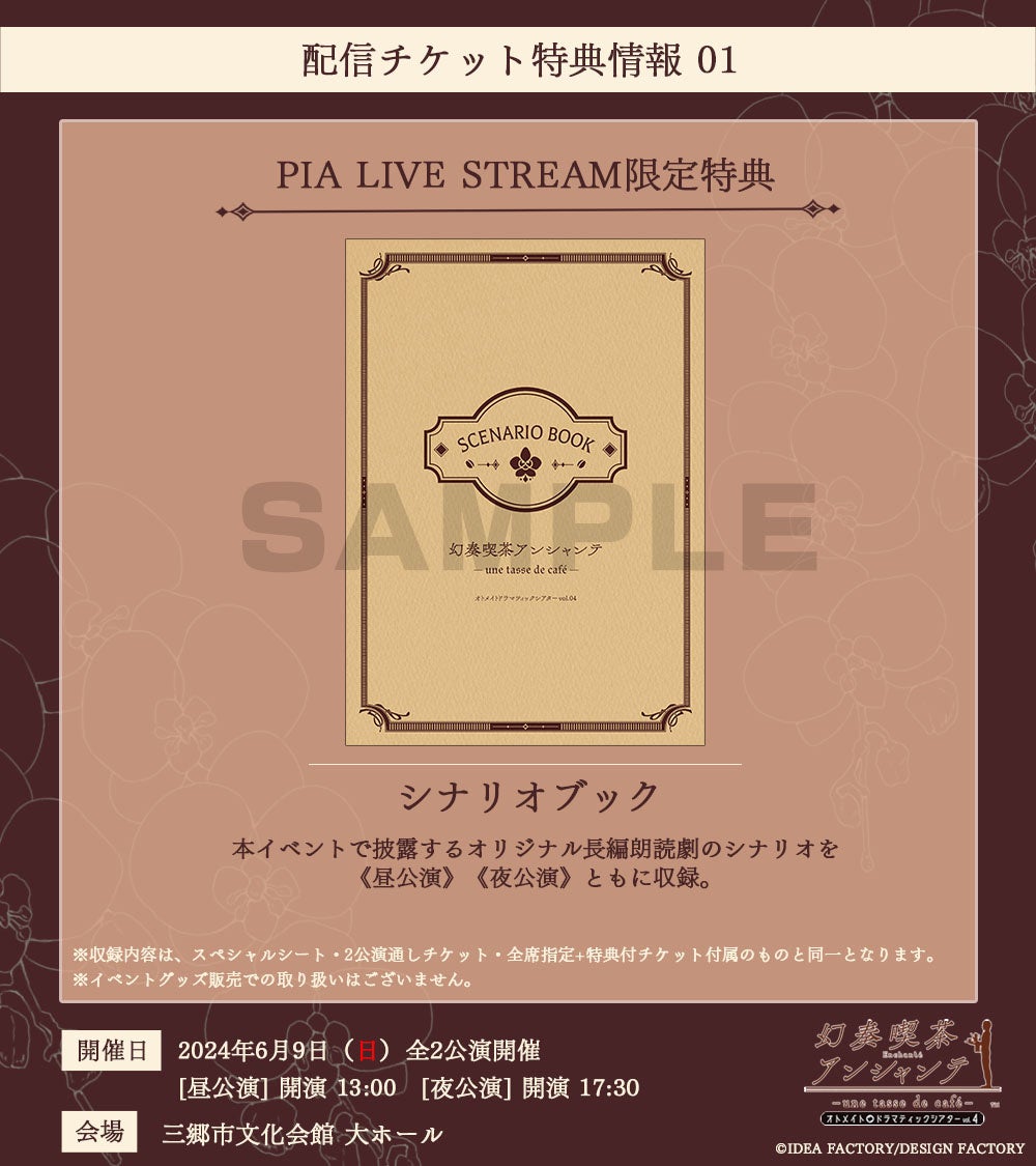 イベントのテーマは「幻奏喫茶アンシャンテ」で、特典付きの配信チケットや会場チケットが販売されます。