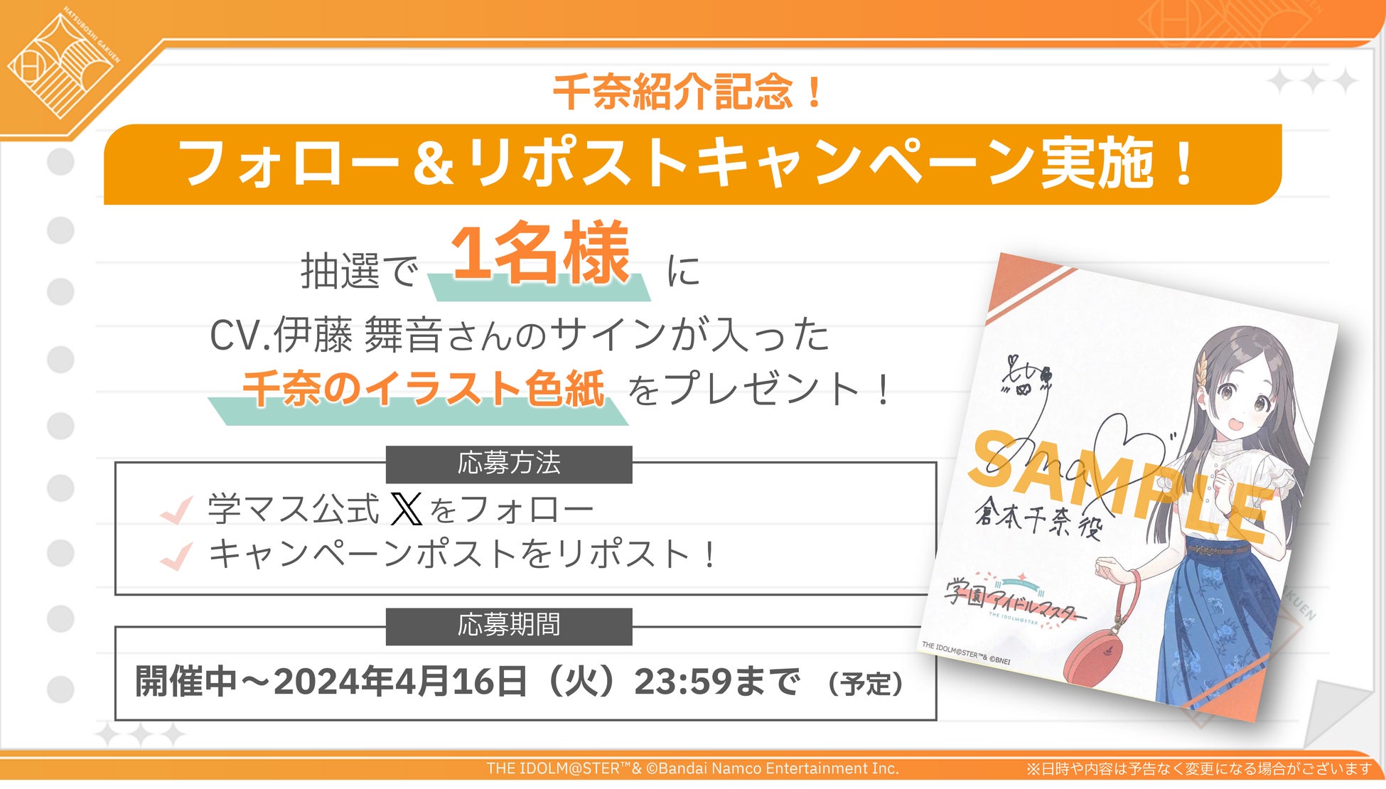 新作アイドルマスター『学園アイドルマスター』8人目のアイドル「倉本千奈」詳細発表!2024年リリース予定