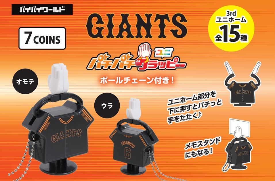 読売ジャイアンツの新しいカプセルトイ「パチパチクラッピーユニ 読売ジャイアンツ 3rdユニホーム」は、東京ドーム内のGIANTS STORE AMUSEMENTで販売されます。
