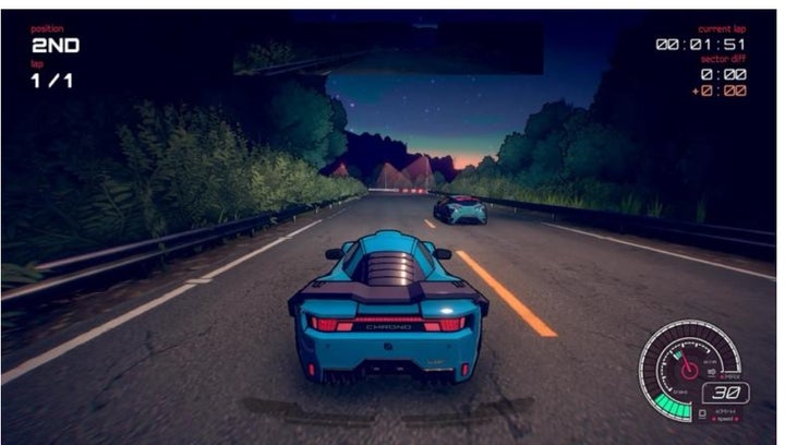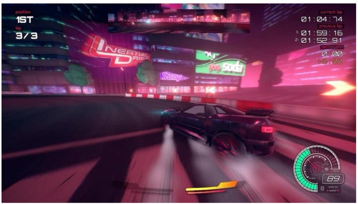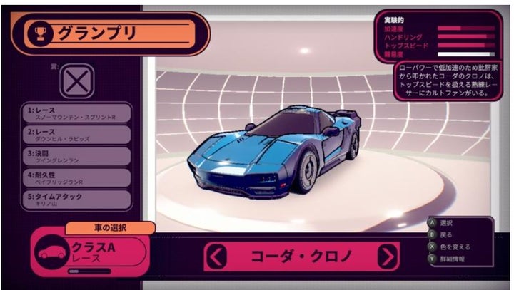 このゲームは90年代風のレトロフューチャーを舞台に、ツインスティックドリフト機能を備えたアーケードレーサーで、独特な操作感と爽快感が魅力です。
